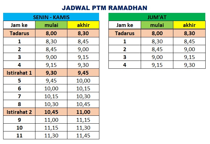 A. Jadwal kegiatan selama bulan Ramadhan Tahun 2022/1443 Hijriah di SMA Negeri 1 Martapura: